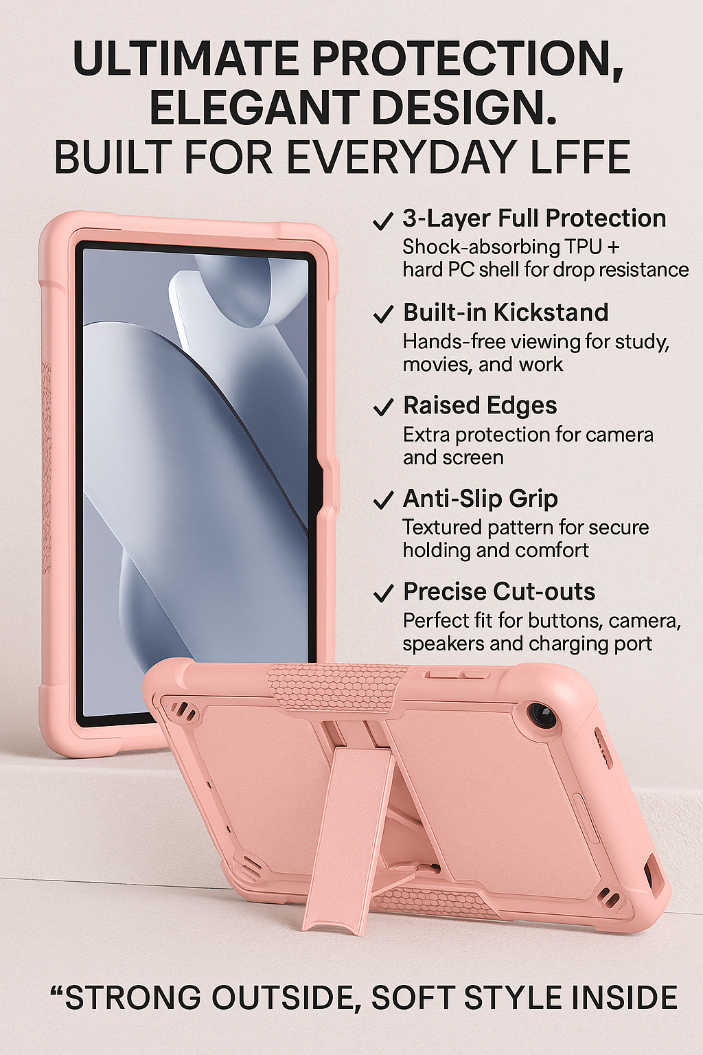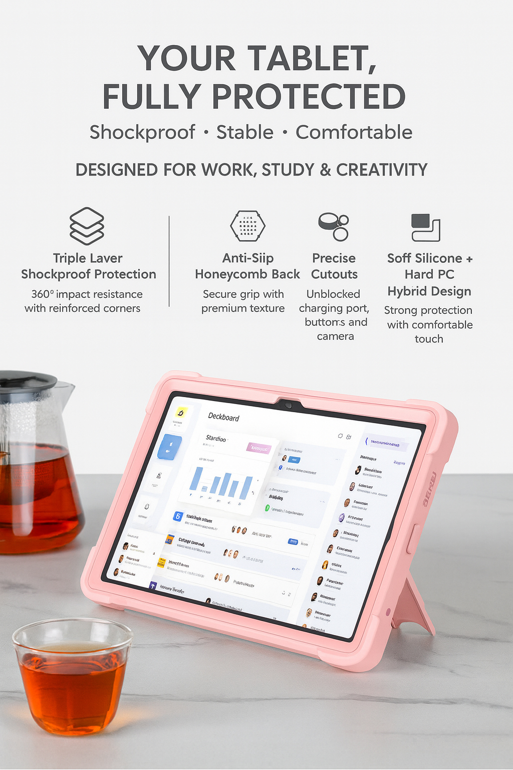 This Heavy Duty Shockproof Silicone Case for Revvl Tab2 is an amazing, multifunctional case that protects your brand-new Pad at all costs. The heavy-duty case even has a pencil holder and a built-in kickstand for your convenience.