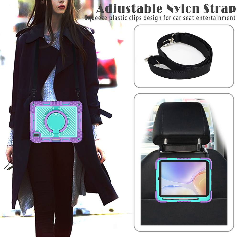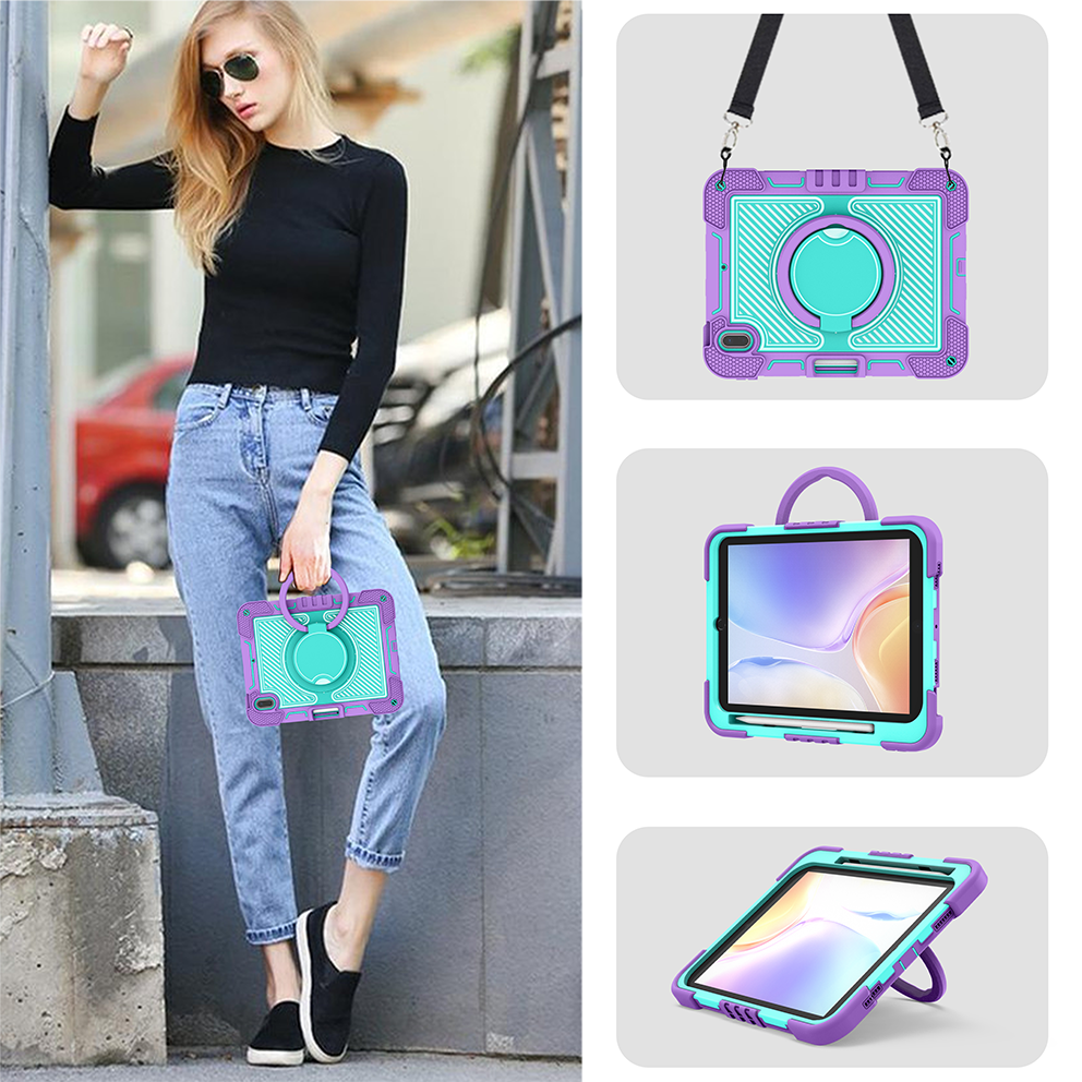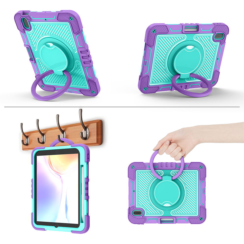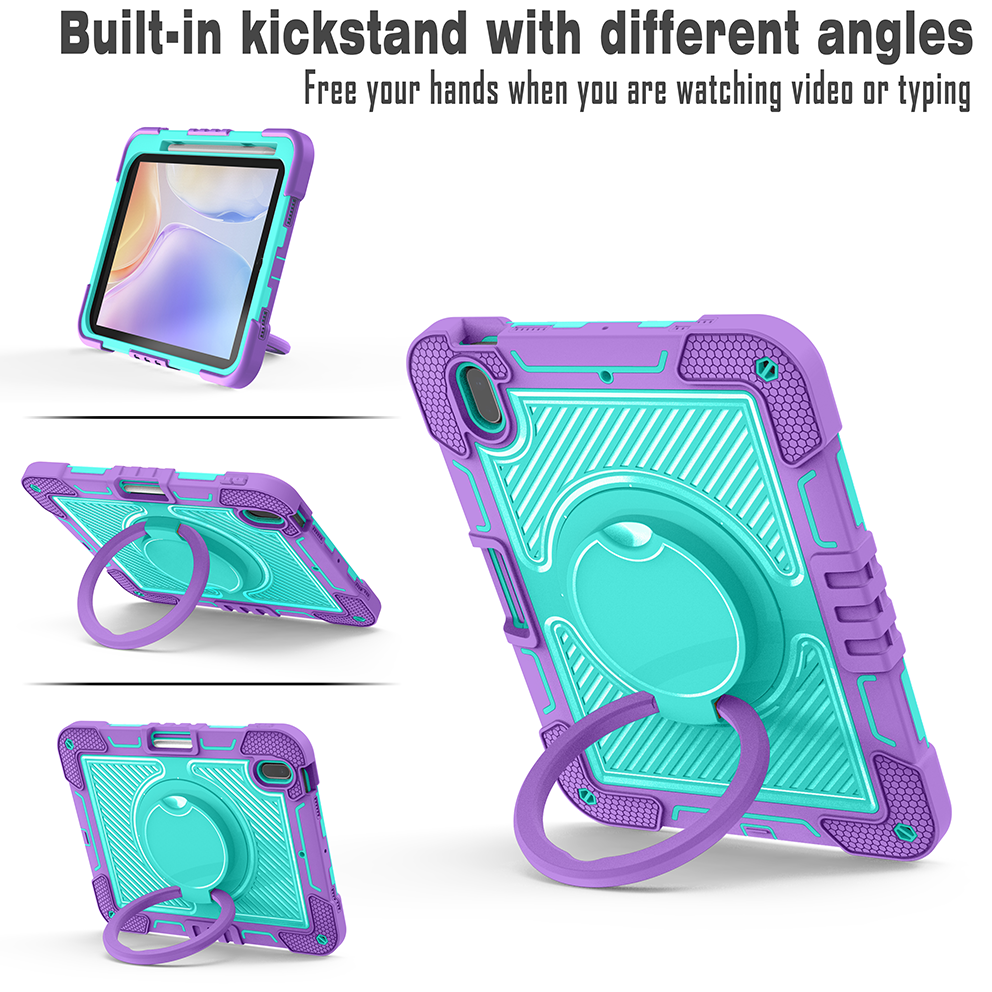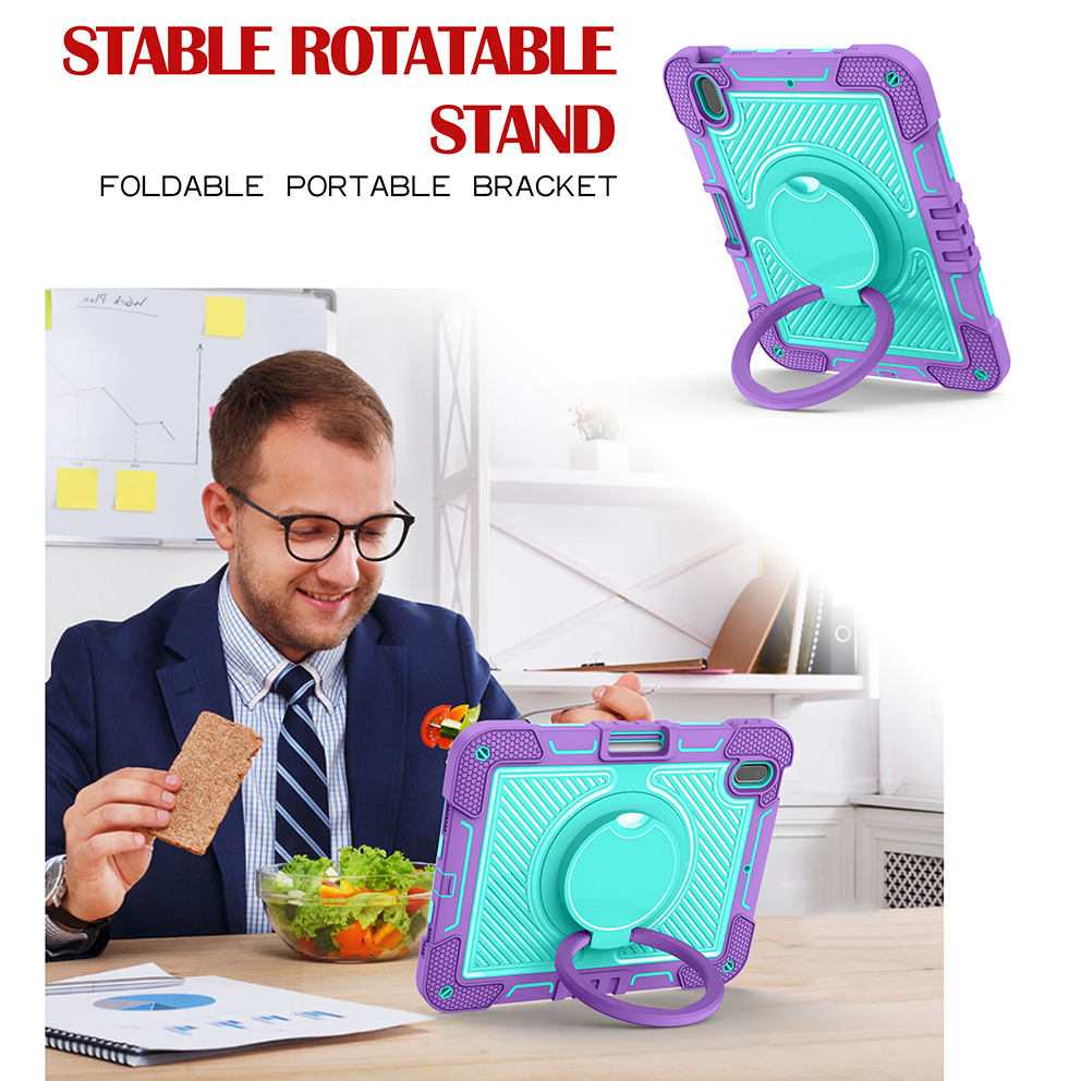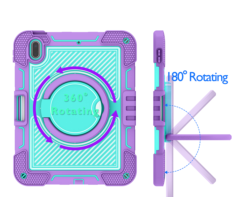 Add color and protection to your iPad 10th Gen (2022) with this Purple + Mint Green rugged case, built with a 360° rotating ring stand, soft silicone shell, and anti-drop triple-layer structure.