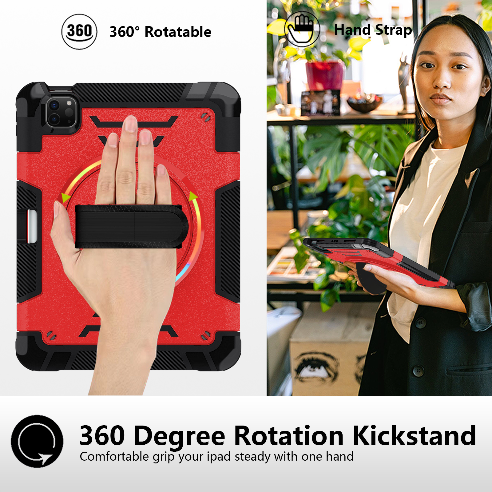 Stand: Built-in 360° rotating kickstand