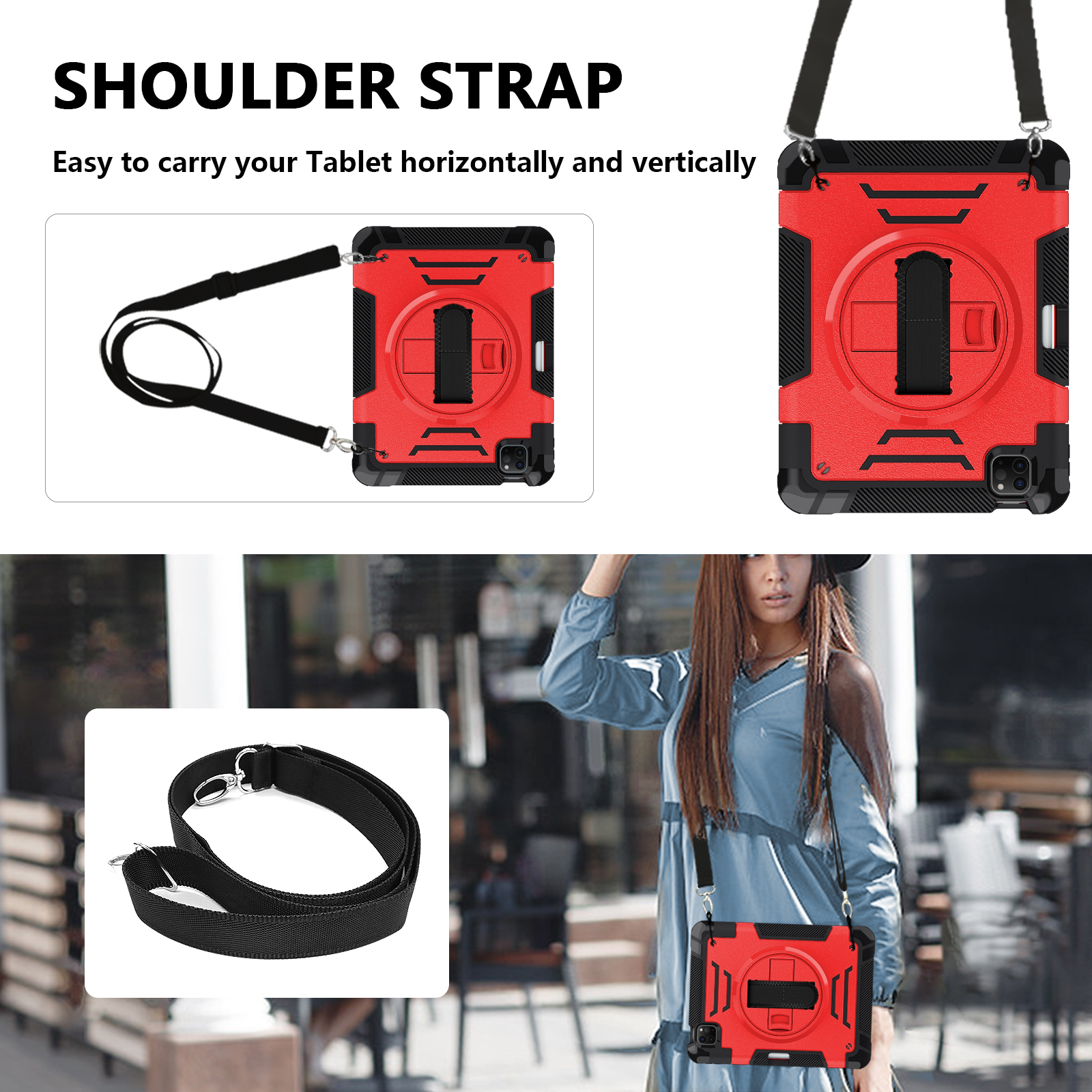 Strap: Adjustable hand/shoulder strap included