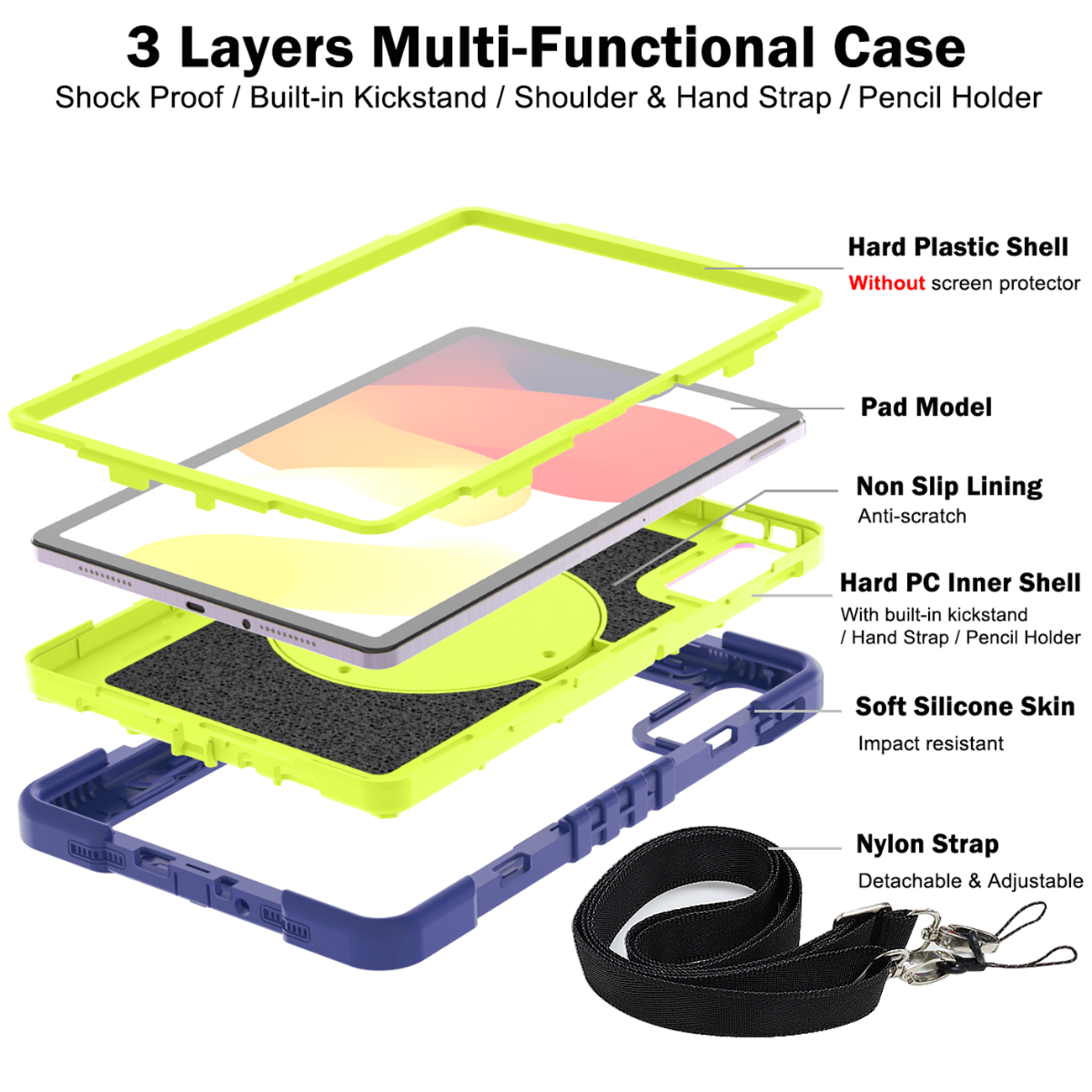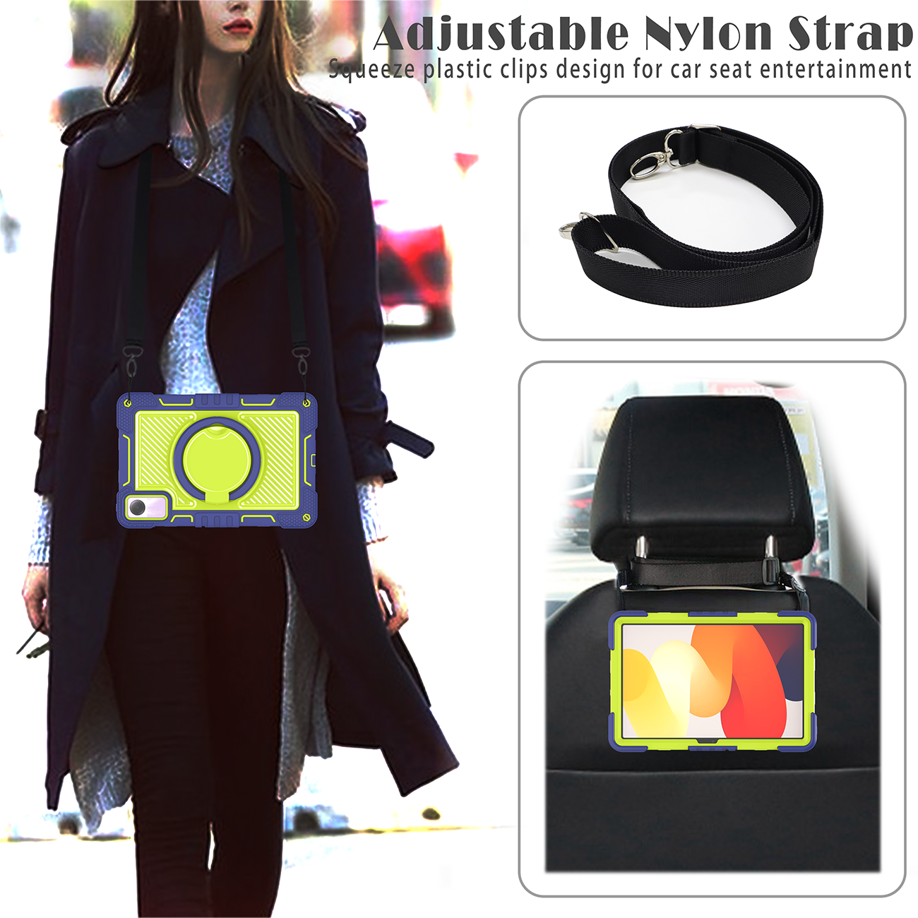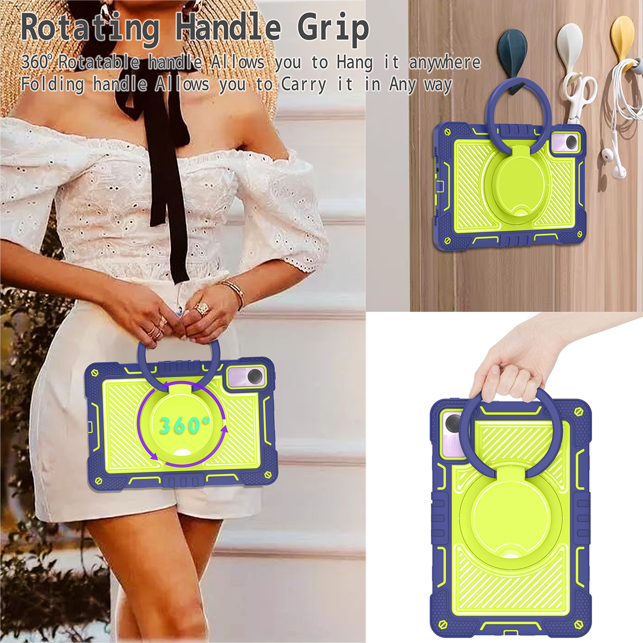 TOZIZO Rugged 360° Rotating Navy Blue & Yellow-Green Case for Redmi Pad SE 4G 8.7 inch
