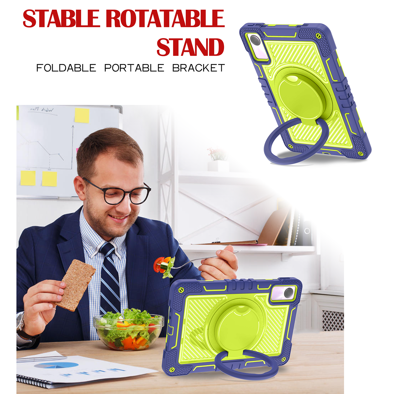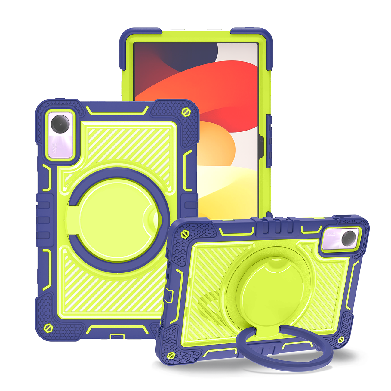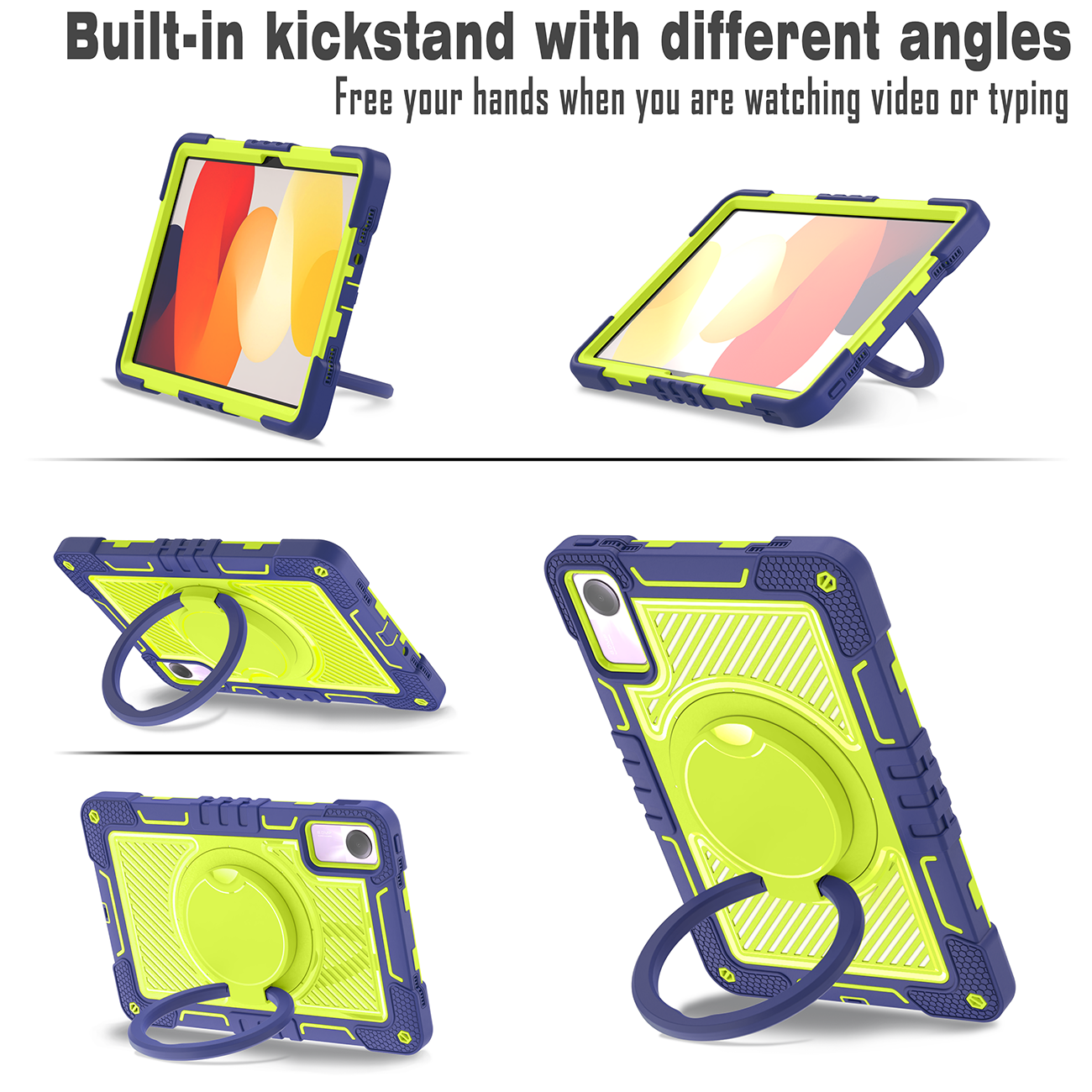 Triple-layer heavy duty shockproof protective case with kickstand and rotating ring grip for Redmi Pad SE 4G.