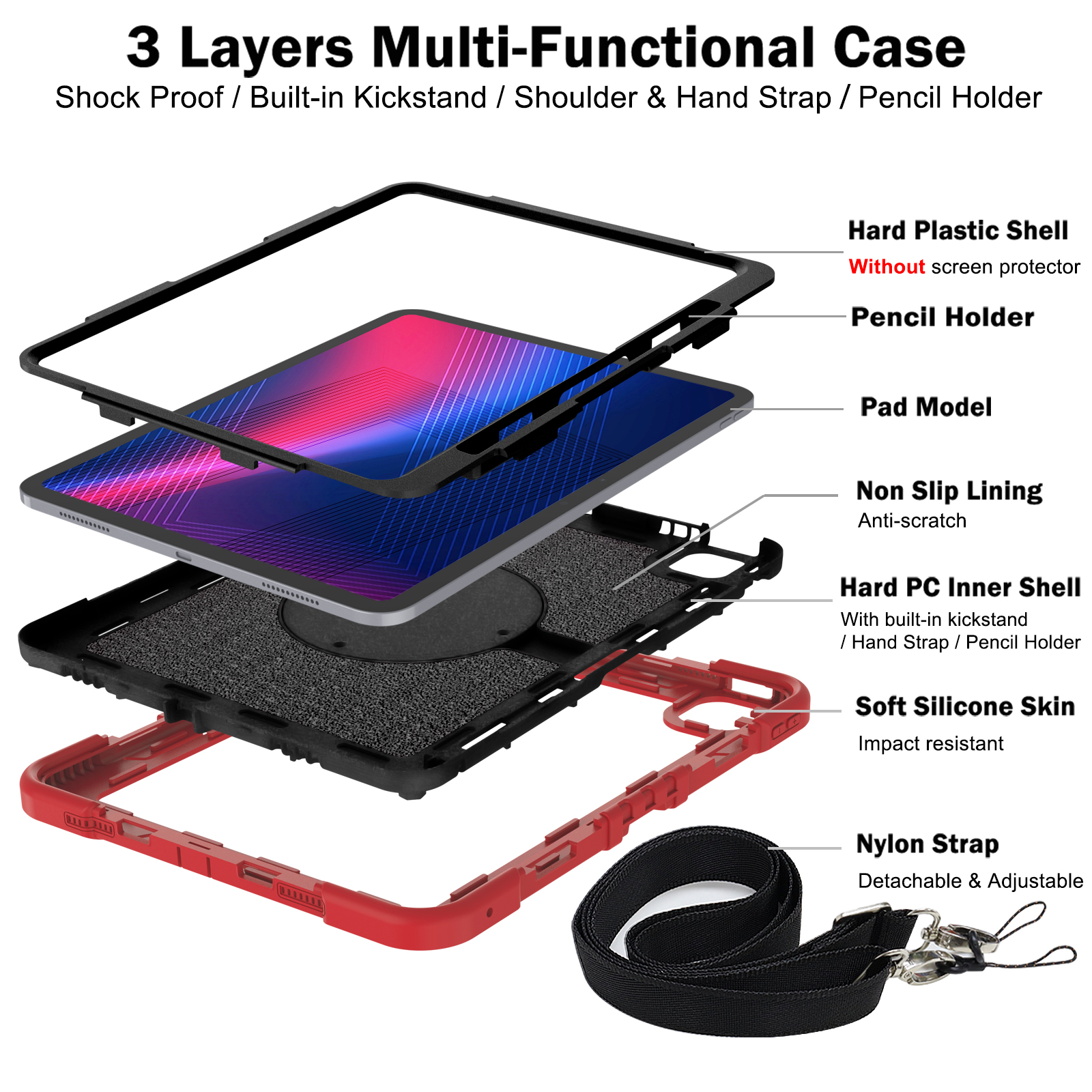 Structure: 3-Layer Hybrid Design (Hard PC + Soft Silicone + Inner Shell)