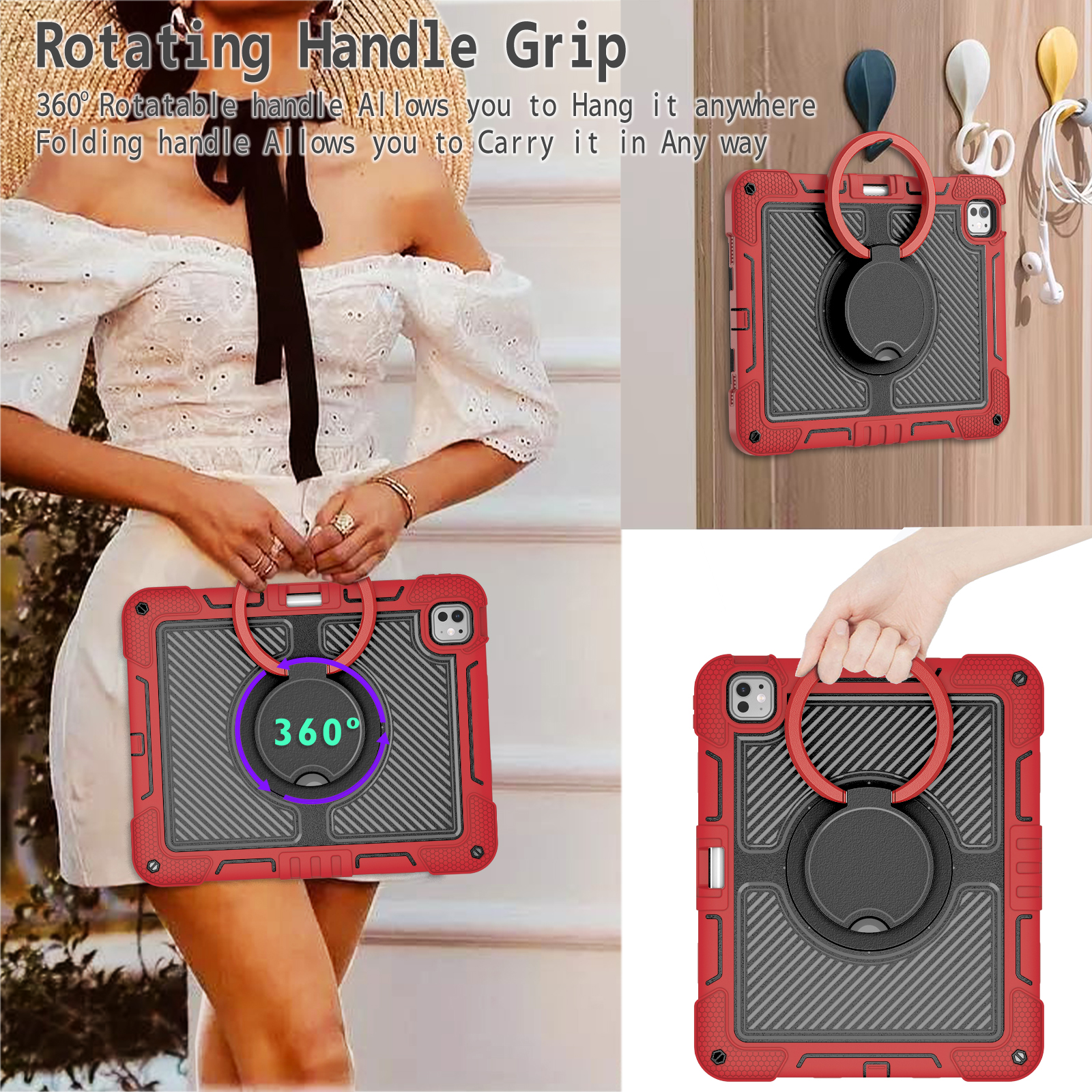 Handle: Rotatable Handle Grip & Adjustable Hand Strap