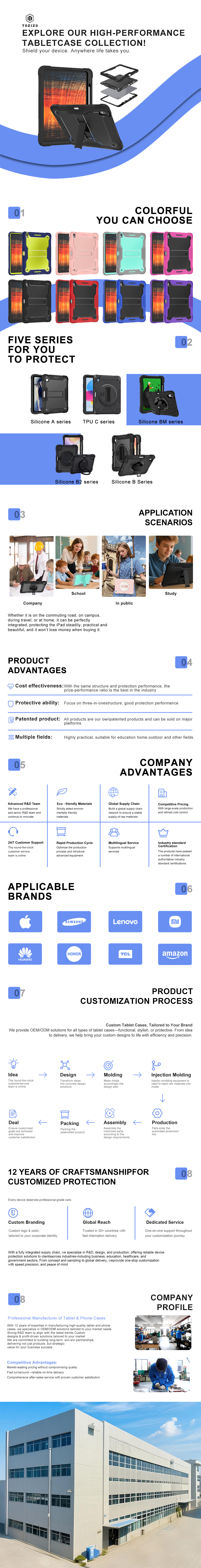 Keywords: iPad Case, silicone tablet case, heavy duty rugged case, rugged tablet case, full body protective tablet case, shockproof tablet case, multi angle kickstand tablet case.