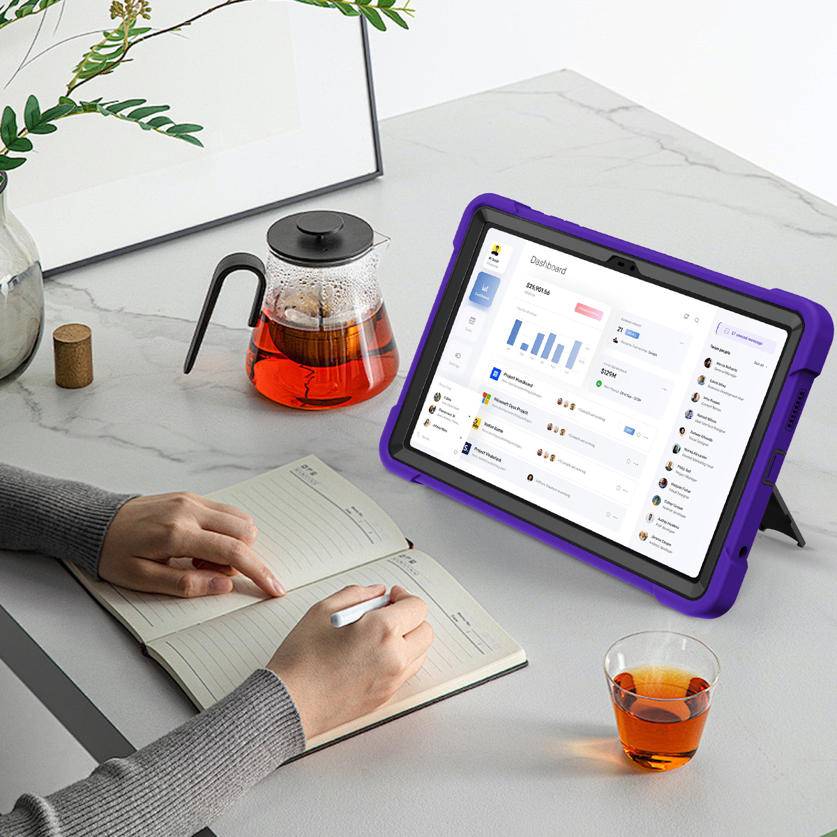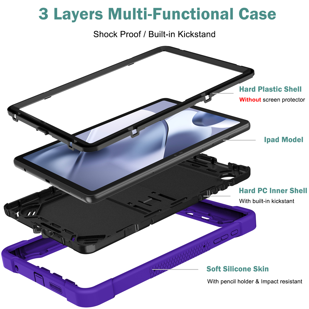Full Body Protective Case with Kickstand and Triple Layer Design for T-Mobile Revvl Tab 2 - Purple & Black