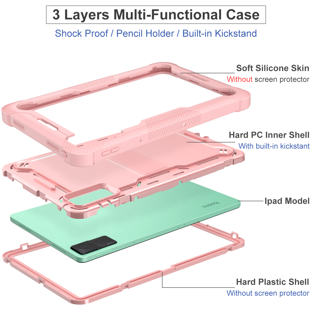 This Heavy Duty Shockproof Silicone Case for Redmi Pad 10.61 inch is an amazing, multifunctional case that protects your brand-new Pad at all costs. The heavy-duty case even has a built-in kickstand for your convenience.