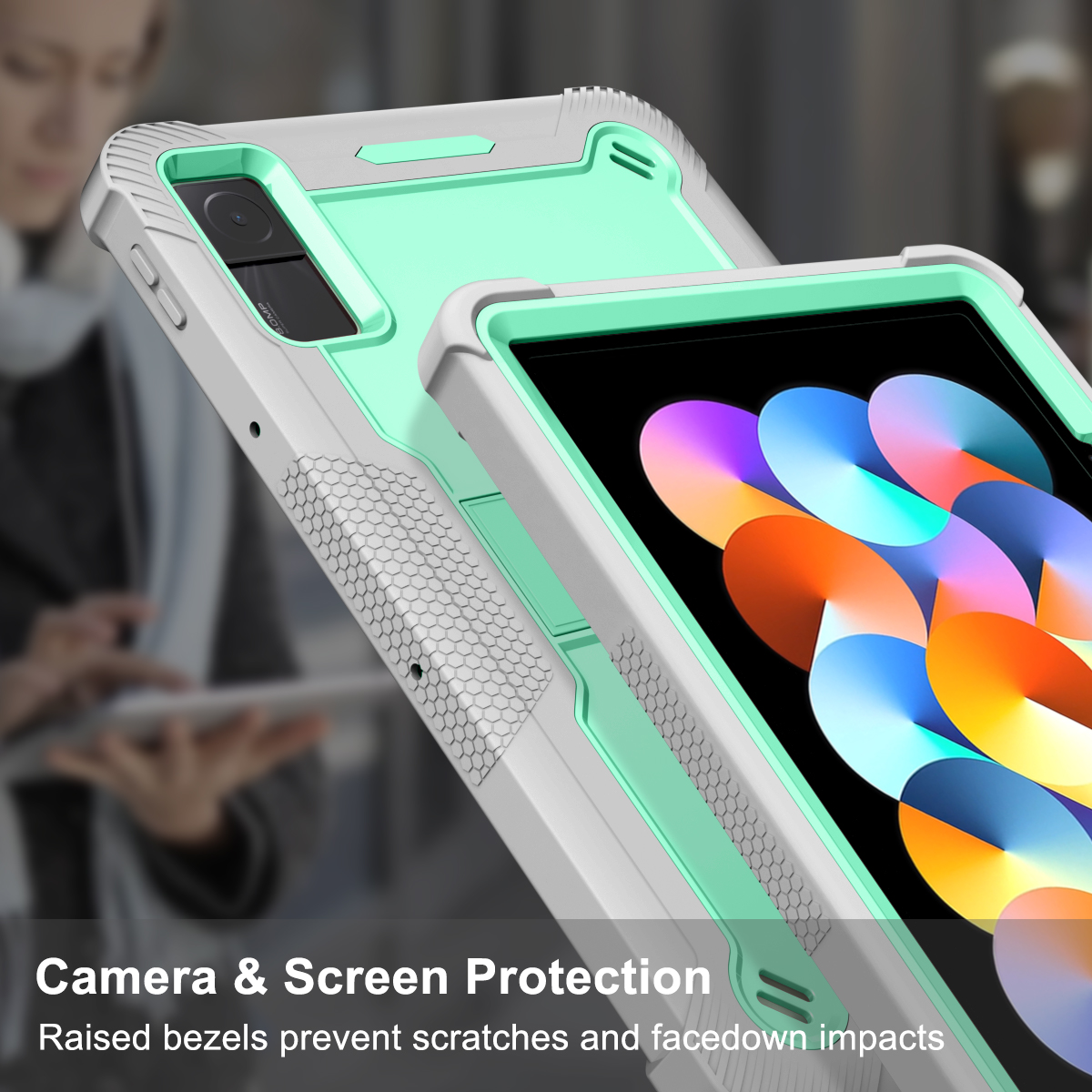 · With raised bezels to protect your screen and camera lens