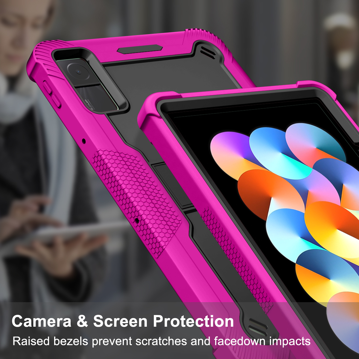 · With raised bezels to protect your screen and camera lens