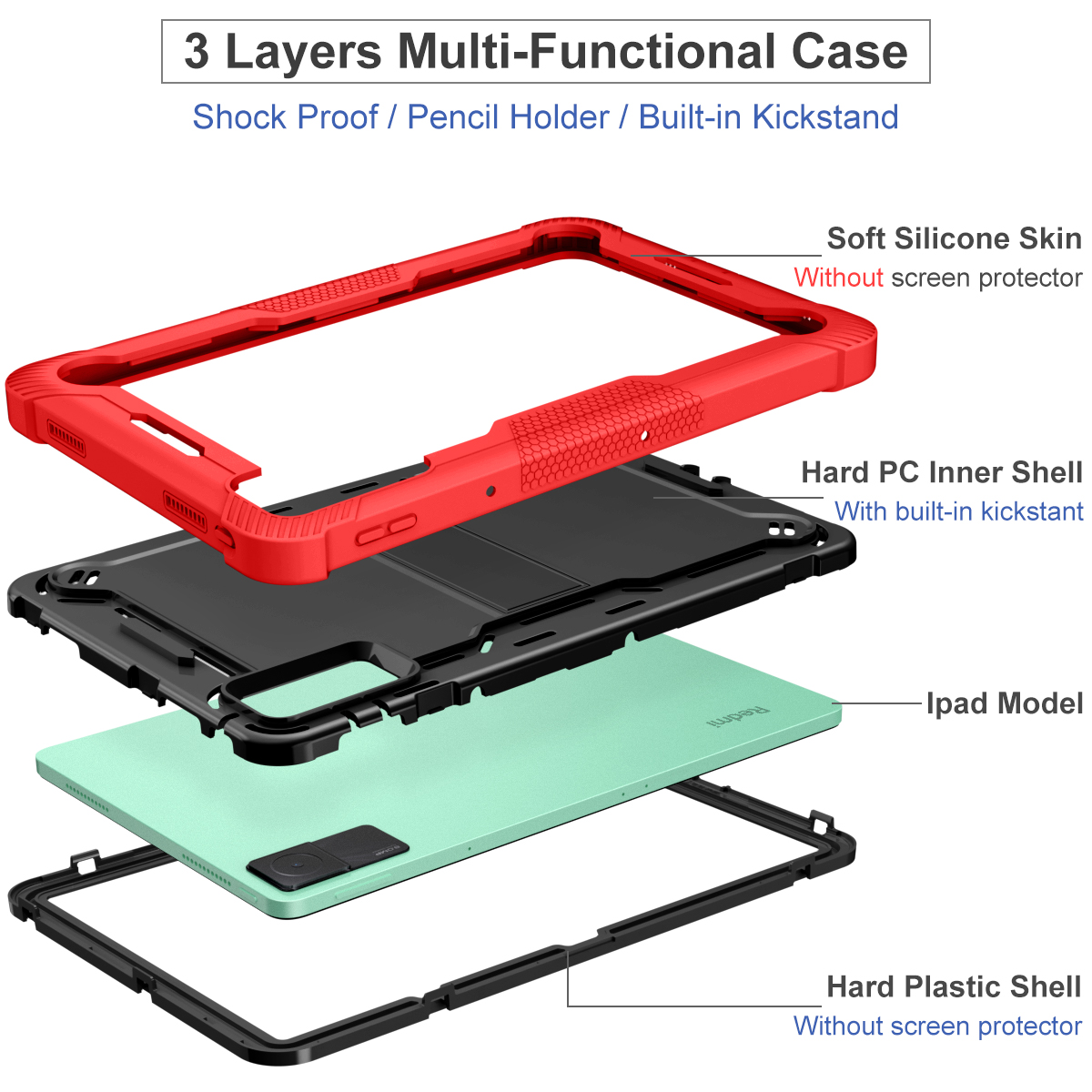 This Heavy Duty Shockproof Silicone Case for Redmi Pad 10.61 inch is an amazing, multifunctional case that protects your brand-new Pad at all costs. The heavy-duty case even has a built-in kickstand for your convenience.