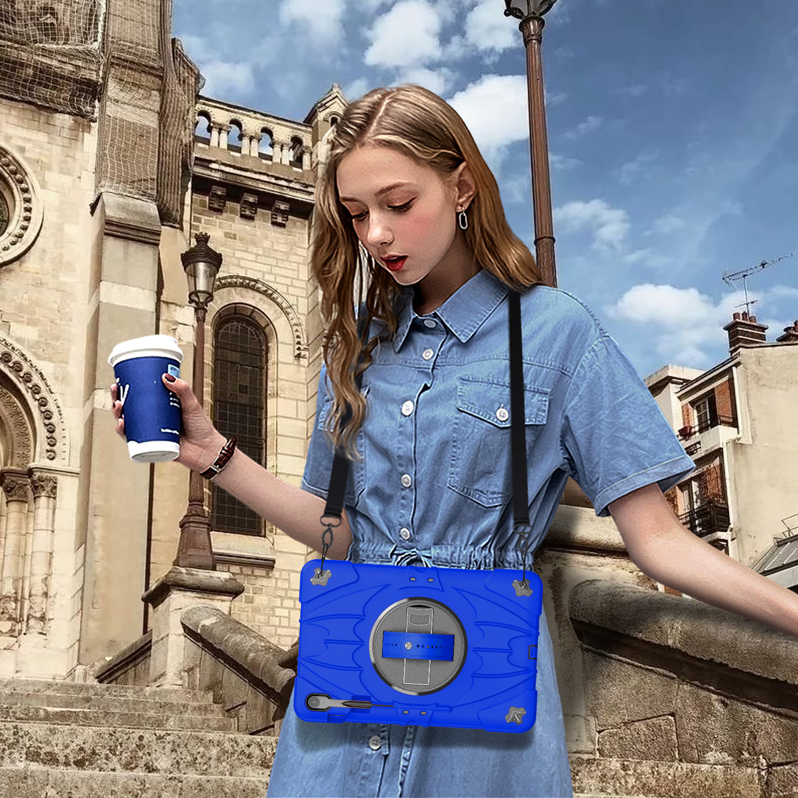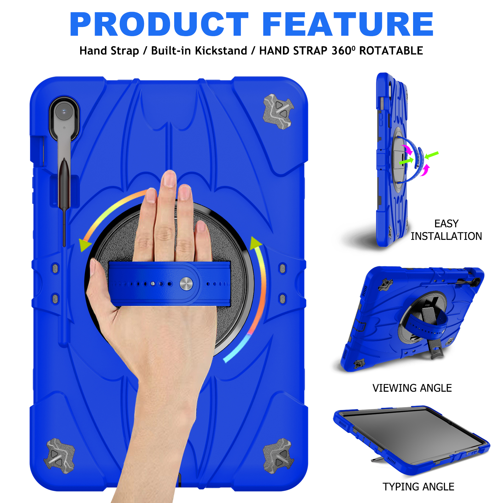 Switch effortlessly between portrait and landscape mode with the smooth 360° rotating back. The built-in hand strap ensures a secure, comfortable grip for easy carrying on the go.