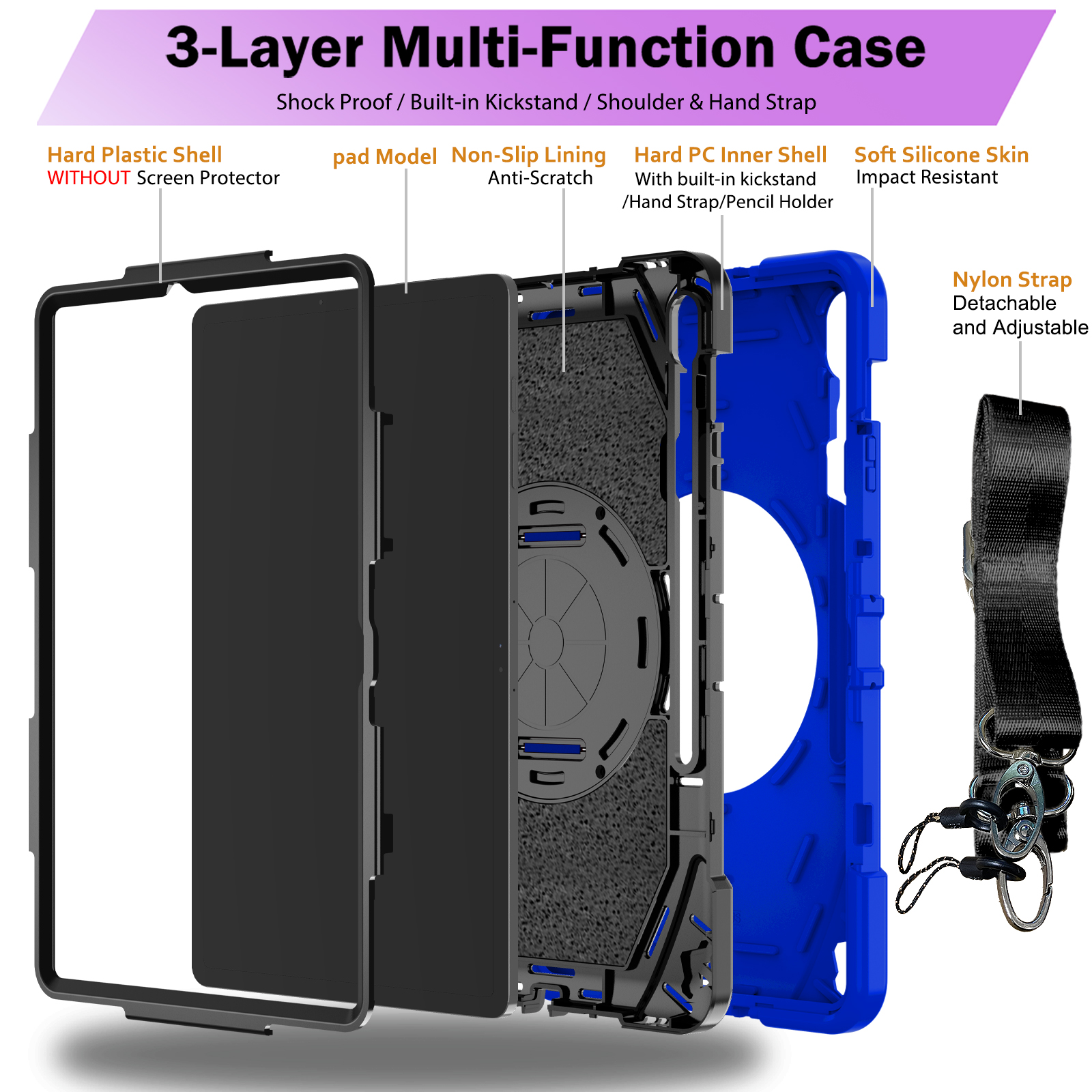 Made of 3-layer screen frame,engineered with high-grade silicone and advanced shock-absorbing technology, this case provides military-grade protection against drops, impacts, and collisions—keeping your iPad safe in any situation.