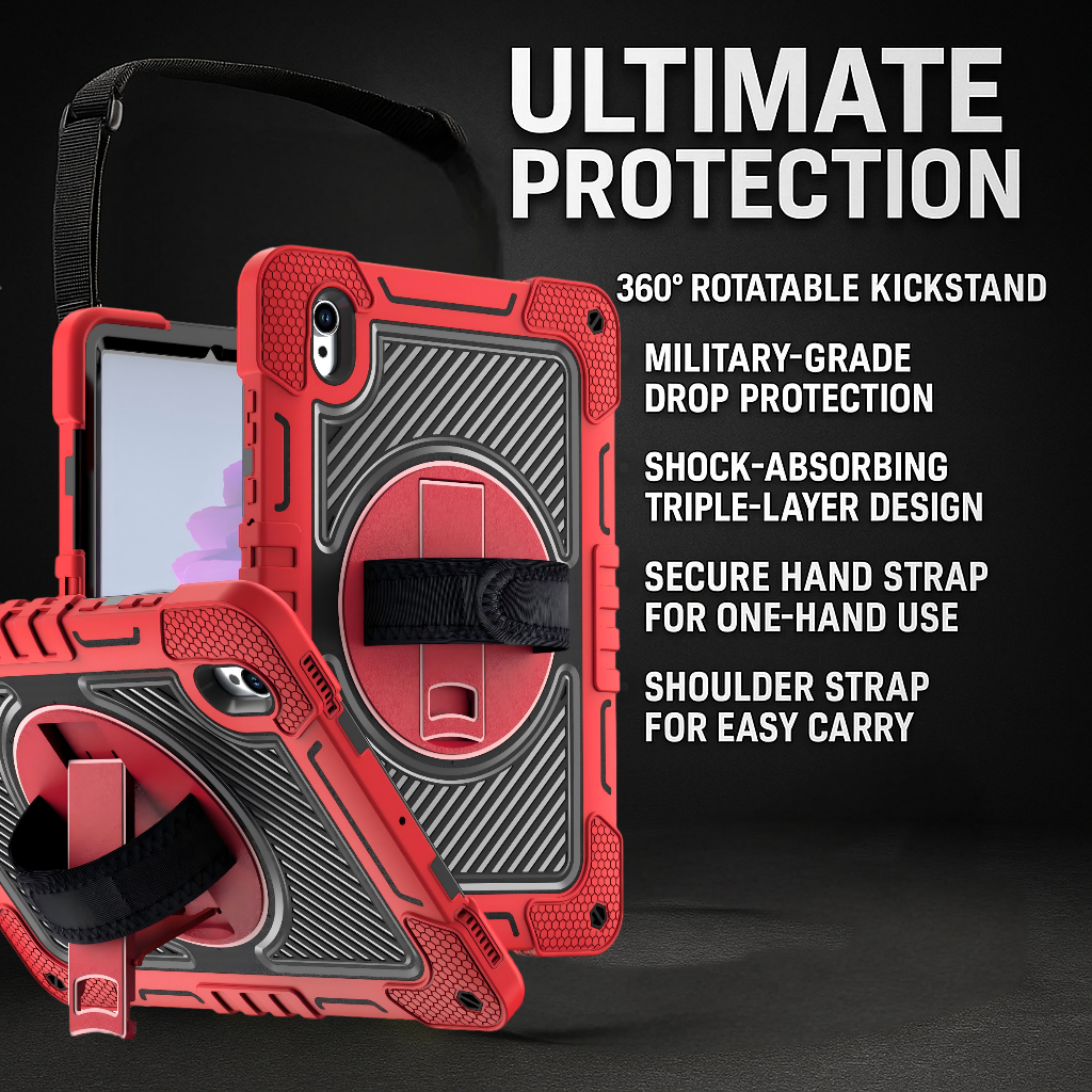 The built-in rotating hand strap allows effortless one-handed operation, perfect for students, field workers, teachers, and professionals who require tablet mobility and stability.