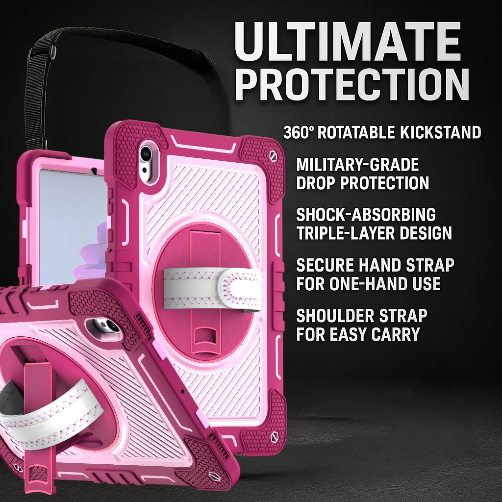 The built-in rotating hand strap allows effortless one-handed operation, perfect for students, field workers, teachers, and professionals who require tablet mobility and stability.