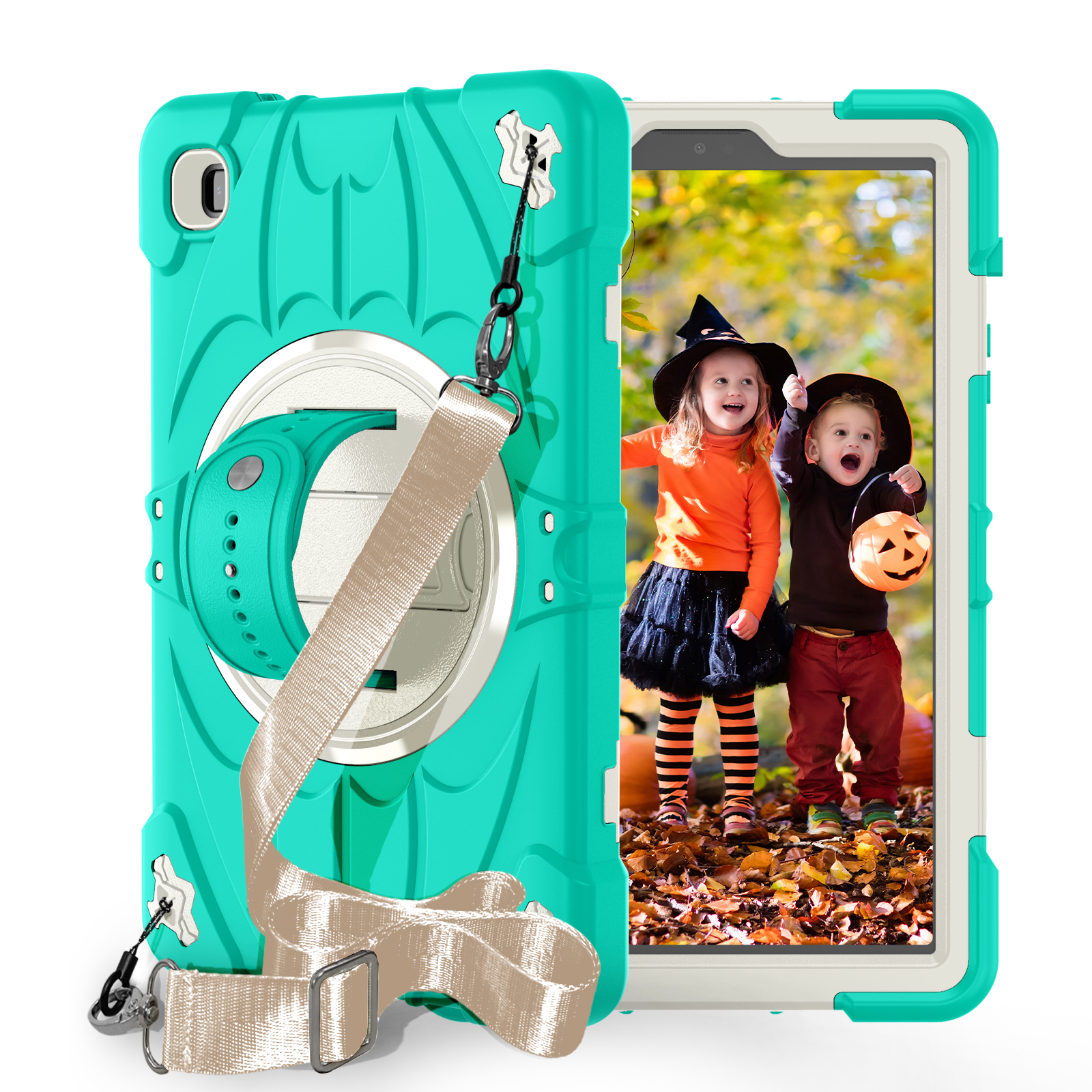 Full-body rugged survivor tablet case for kids and classrooms. Triple-layer hybrid protection with kickstand and hand strap, built for Samsung Tab A7 Lite T220/T225.