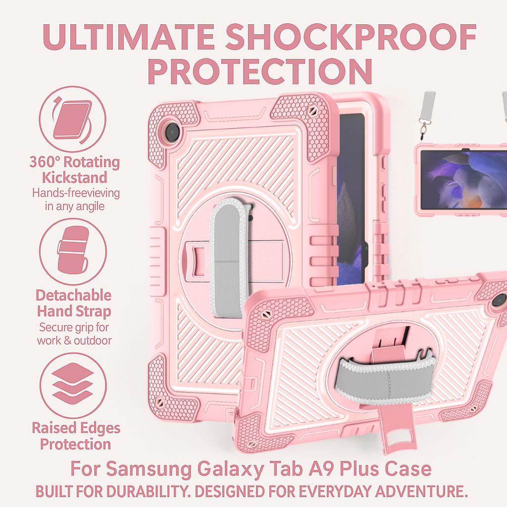 The built-in rotating hand strap allows effortless one-handed operation, perfect for students, field workers, teachers, and professionals who require tablet mobility and stability.