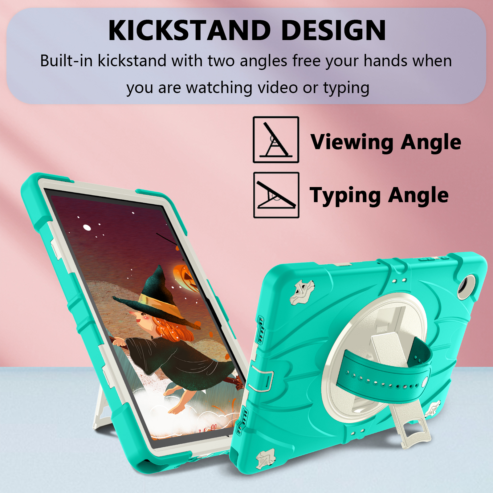 Kickstand: Built-in stand with horizontal & vertical angles