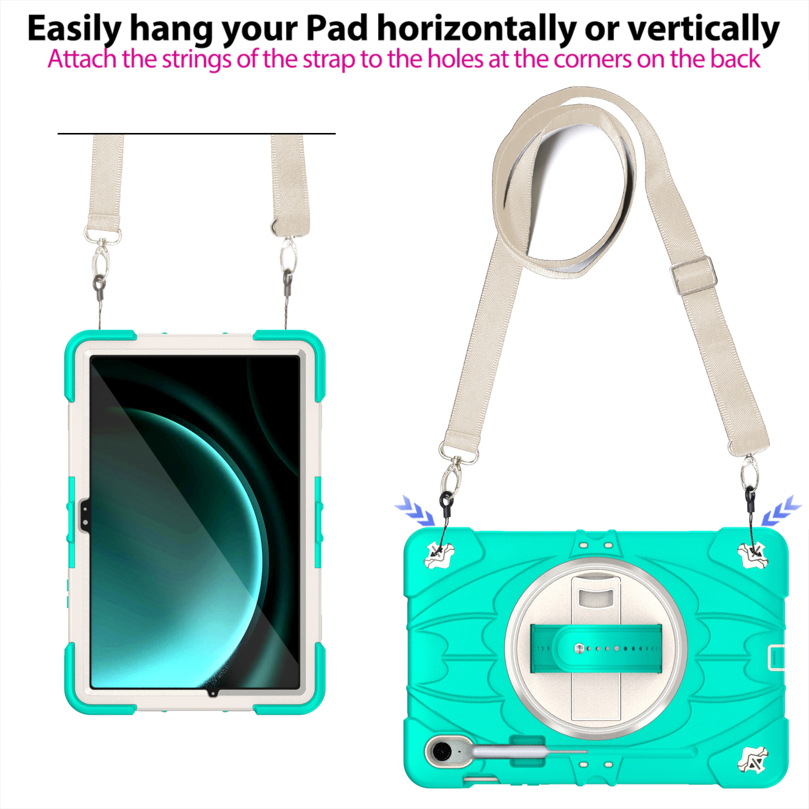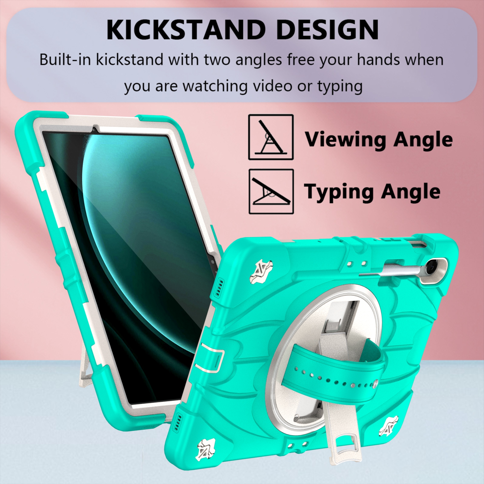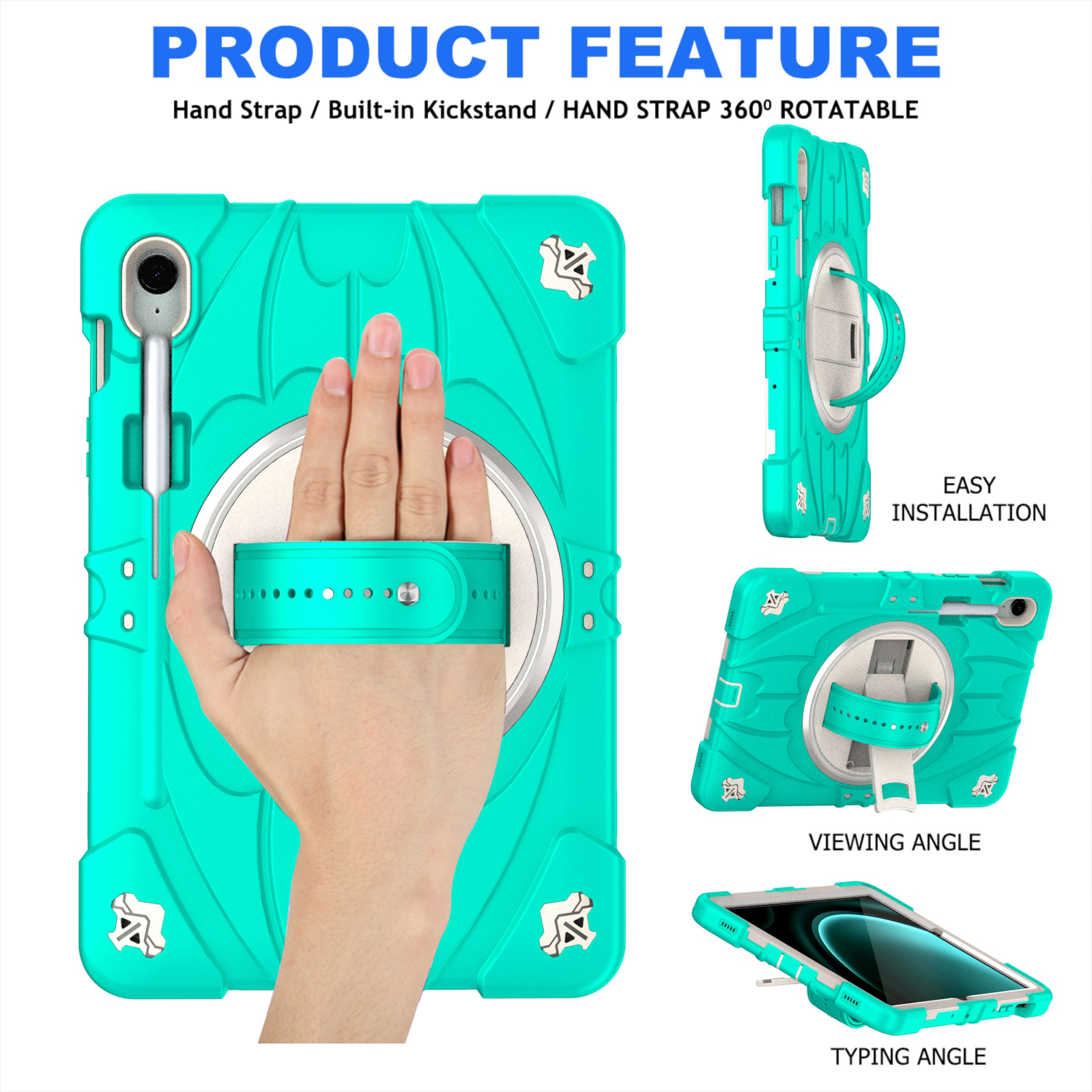 Switch effortlessly between portrait and landscape mode with the smooth 360° rotating back. The built-in hand strap ensures a secure, comfortable grip for easy carrying on the go.