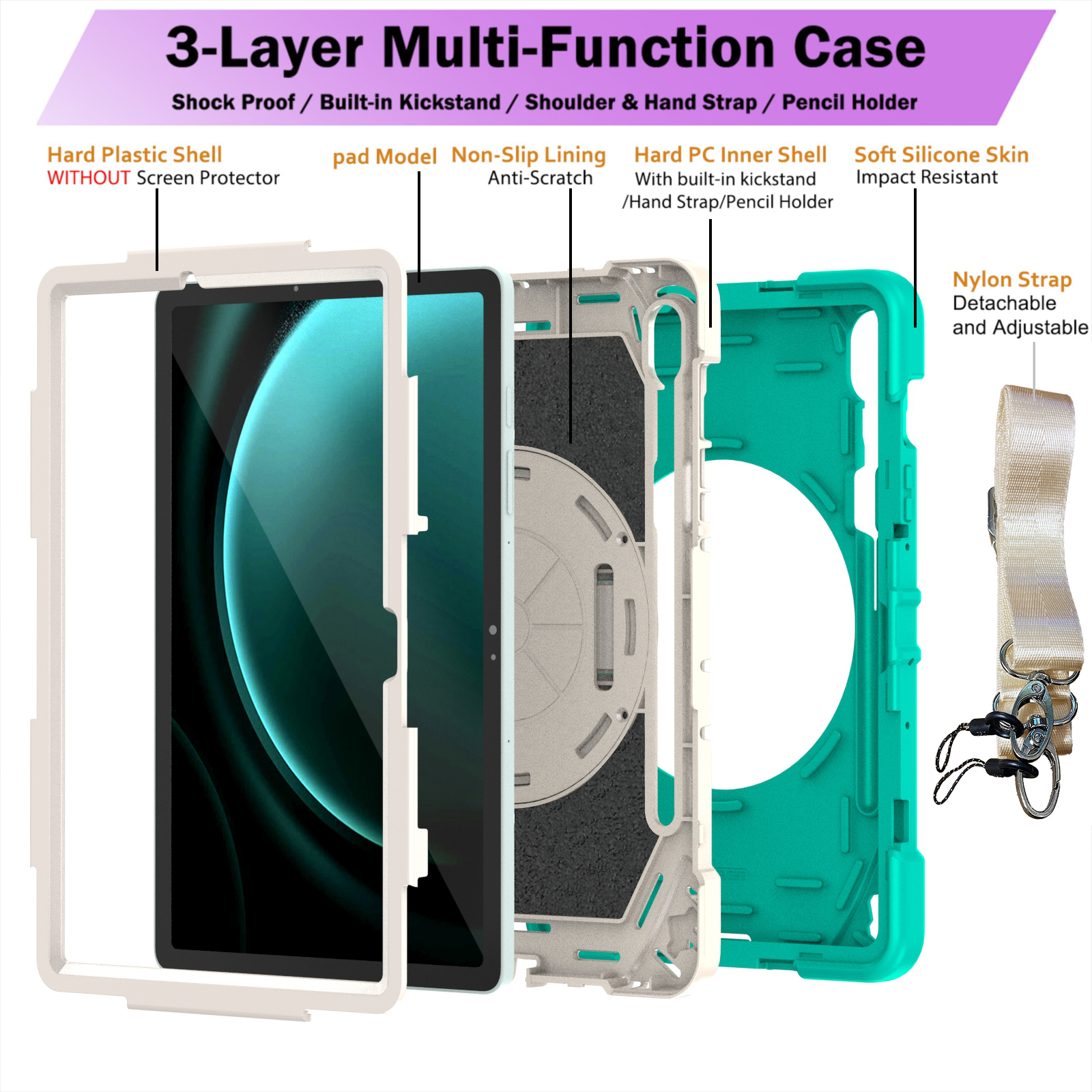 Made of 3-layer screen frame,engineered with high-grade silicone and advanced shock-absorbing technology, this case provides military-grade protection against drops, impacts, and collisions—keeping your iPad safe in any situation.